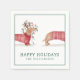 Our festive holiday napkin design features our hand drawn dachshund dog wearing a festive red cosy knitted sweater. The dachshund dog is wearing antlers with a string of Christmas lights wrapped around the dog and in the dog's month. The front of the dachshund dog is placed on one side of the napkin with the back end of the dog placed on the other end to create the impression of the dog wrapping around the napkin and to create a cute fun design. Original artwork by Moodthology.