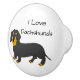 Add a bit of style to your cabinets and furniture in any room. This decorative ceramic knob with a dachshund dog design will do just that. You can customise this knob with any text. Should you require any help with customising then contact us through the message link on this page. Ceramic knob for cabinets and furniture with a dachshund dog design.