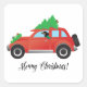 Dachshund Dog Driving Car - Christmas Tree on Top Square Sticker