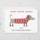 Cute and adorable Dachshund Sausage or Wiener dog in a festive red and white knitted sweater. Change the names and the greeting to personalise. Original art by Nic Squirrell.