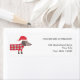 A cute little Dachshund wiener sausage dog in a heist as Santa hat. Original art by Nic Squirrell. Change the name and address to customise.