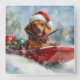 Dachshund Dog in Sledge Let it Snow Christmas Square Wall Clock