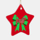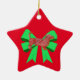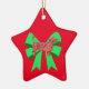 Dachshund Dog Silhouette Red & Green Bow Christmas Ceramic Ornament