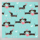 Dachshund dogs in love and hearts seamless pattern on a blue background. Valentines day vintage illustration