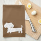 Brighten up your kitchen with this medium brown dachshund dish towel - also available in orange, blue, teal, green and red! Featuring a playful wiener dog design against a bold pink backdrop, it’s equal parts practical and paw-sitively stylish. Perfect for drying dishes, adding a pop of colour to your décor, or gifting to a fellow doxie devotee, this towel brings long-dog charm to everyday tasks.