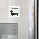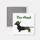 Great Dachshund lover magnet, with a whimsical German dressed black dachshund and text above reading, Der Hund (The Dog, in German). Great little gift magnet for any wiener dog lover.