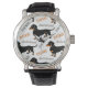 Cute dachshund / doxie pattern featuring a black and tan smooth coated dachshund.
