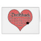 This design is a celebration of the many gifts that our beloved Dachshunds can bring into our lives, though we may appreciate some of those gifts more than others! On a large heart covered with puppy pawprints (and a small stain in the corner!), the words read 'Dachshunds leave paw prints on your heart, hair on your clothes, and what is that on the rug, anyway?' This is for those of us who love our dogs and know that sometimes it's best just to laugh about the occasional messes!