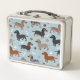 Dachshund Paws and Bones Pattern Blue Metal Lunch Box