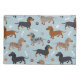 Dachshund Paws and Bones Pattern Blue Pillowcase