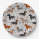 Dachshund Paws and Bones Pattern Gray Paper Plate