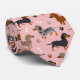 Dachshund Paws and Bones Pattern Pink Tie