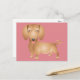 Brighten someone's day with handwritten note! This fun canine postcard features a graphic image of a brown Dachshund puppy dog highlighted against a creamy pink background.