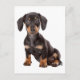 Brighten someone's day with handwritten note! This fun canine postcard features an image of a brown and black Dachshund puppy dog highlighted against a crisp white background.