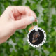 Cute dog lover's keychain with dachshund puppy photo and dog paw prints frame. Black paw prints on white background. Click Personalise This Template to replace puppy photo with your own Instagram puppy photo and create your own unique one of a kind design. A lovely personalised gift for puppy lovers! If you want to edit more you can replace some paw prints with custom text or puppy name.