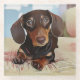 Dachshund Puppy Sits On A Sofa Glass Coaster