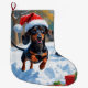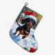 Dachshund Running in Snow with Christmas Hat Large Christmas Stocking