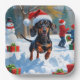 Dachshund Running in Snow with Christmas Hat Paper Plate