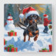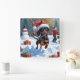 Dachshund Running in Snow with Christmas Hat Square Wall Clock
