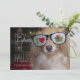 Vibrant colored letters, trees, holly and cancy canes in a cheerful message suitable for a non-religious holiday greeting. I especially liked it on the black background which made the design pop.