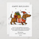Send a bundle of holiday fun with this irresistibly funny Dachshund Christmas card! This adorable illustration features a cheerful Dachshund wearing a Santa hat and a festive sweater, hilariously transporting a stack of wrapped Christmas gifts on its back. This whimsical and unique card is perfect for Dachshund owners and dog lovers who want an unforgettable, joyful greeting to spread peace, laughter, and warmth this holiday season.