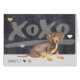 Very cute Dachshund / Wiener / sausage dog themed Valentines Day card from Ricaso .. an adorable black and white dog, featured on a black watercolor background with a large XOXO text detail behind and small heart detail - add your own names or other text to this valentine / love card
