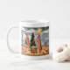 Three Dachshunds in witch hats and capes meet in a moonlit clearing to cook up some stew bones in their cauldron. Above, another Dachsie flies in front of the moon on a broomstick. This bewitching illustration is perfect for Halloween or the Wiccan Wiener dog lover in your life.