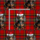 This cute Dachshund sits pretty with a Santa hat on a red and green holiday plaid to create a fun Christmas fabric for holiday crafting and gift giving.