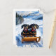 Send festive greetings with this adorable Dachshund Christmas postcard. Featuring two charming Dachshunds having fun on a sled in the snow, this Dachshund Christmas postcard captures the joy of the holiday season. Perfect for dog lovers and Dachshund Fans, this Christmas postcard includes a Merry Christmas message on the front and is a delightful way to share holiday cheer with friends and family.