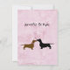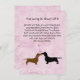 Cute dog themed wedding reception bride and groom information table cards, done with graphics of a pink distressed background. Cute silhouettes of a brown and a black dachshund, with pink hearts between them decorates the bottom of the card. All text is customisable to suit your event needs. Matching products available.