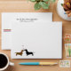 Cute dog themed wedding invitation envelope, done in white, with a pink distressed background on the inside. Sweet graphics of a black and a brown dachshund kissing decorates the front of the envelope, with a brown, pink, and black striped band, on the lower back flap. Black text return address, on the back flap, is fully customisable and ready to personalise with your information. Matching wedding products available.