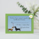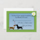 Cute dogs wedding response RSVP card done in white, with adorable silhouette graphics of a brown and a black dachshund kissing, in the bottom left corner. A light blue and green frame surrounds the outer edge, with a single white daisy in the upper right corner. Customise the fun curly text to suit your needs.