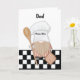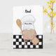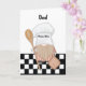 In the gnome's hands, a wooden spoon and pot holder symbolise the joy of cooking and baking, making it a perfect representation of culinary enthusiasm. The background showcases a chequered floor, creating a culinary ambiance. The black and white colour scheme adds a classic and timeless touch, making the card visually appealing and sophisticated. The card is not only a celebration of a birthday but also an ode to the magic of cooking and the heartwarming moments shared in the kitchen with your dad.