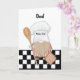The front of the card features an endearing illustration of a gnome, heartwarmingly dressed in a chef hat, against a delightful chequered background. The gnome holds a wooden spoon, radiating warmth and culinary enthusiasm. The chequered pattern adds a touch of cosiness, setting the stage for dad’s birthday celebration filled with love and homemade delights.