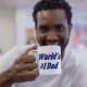Mug with World's #1 Dad in 3D dark blue text. Mug available in several styles and colours.