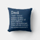 Adorable decorative throw pillow just for dad featuring a white typography design and your choice of colour pillow. Pillow reads: Dad - holder of the wallet, giver of good advice, dryer of tears and fixer of all things. See also: superhero