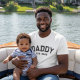 Black White Dad Established New Dad Gift - Classic Bold T-shirt - Customize with their "Dad Name" and the "Est" established Year date when they became official. Perfect Modern Bold style to give as a gift to celebrate that new Dad!