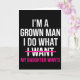 Celebrate Father’s Day with laughter! This “I’m a Grown Man, I Do What My Daughter Wants” Card is the perfect funny gift for dads who proudly embrace their girl-dad role. Featuring bold distressed typography and a playful crossed-out line for extra humour, this design makes an ideal present from daughters for Father’s Day, birthdays, or any special occasion. Great for dads who love jokes, family humour, and sentimental gifts with personality.