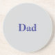 This sandstone coaster has the word Dad in blue text on it. The coaster background is a gray color. This sandstone coaster has a cork backing, so you can use it on any surface. The coaster will help to keep tables neat without scratches or spills. The coaster dimensions are 4.25" diameter and 0.25" thickness. The coaster is made of sandstone with a cork pad backing. If you click the Personalize button you can change the word Dad to a name.