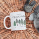 This rustic holiday mug features "my first Christmas as dad" typography with modern script. Your custom names and personalised year are included. At the centre are beautiful painted pine trees. A sweet holiday gift for a special father. Shop this store for coordinating tshirt, ornaments, and more!