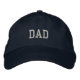 Perfect Father's day adjustable, customisable hat. Also makes a great gift for all Fathers to be. This navy blue cap is high quality with "Dad" embroidered on front. Add your father's name to personalise just for him. Special gift for special father's everywhere.