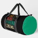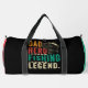 This black duffle bag celebrates the ultimate fishing dad with a bold, colourful graphic. It features a large, detailed bass fish above the text "DAD HERO FISHING LEGEND." This bag is perfect for holding fishing gear, gym clothes, or as a thoughtful gift for any father who loves to cast a line. Edit colour of the bag caps and body in the Design tool to your favored colours.