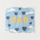 Happy Father's Day cute design, dad i love you yellow text, white clouds and blue hearts in the sky, 3d paper cut cartoon