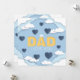 Happy Father's Day cute design, dad i love you yellow text, white clouds and blue hearts in the sky, 3d paper cut cartoon