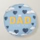 Happy Father's Day cute design, dad i love you yellow text, white clouds and blue hearts in the sky, 3d paper cut cartoon