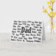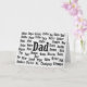 Dad text in black in many different languages word cloud on whitewashed wood background.