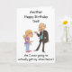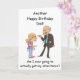 A cheeky, funny birthday card from daughter to Dad, pointing out that because he keeps having birthdays she's still not got her inheritance!