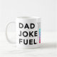 Cute and funny coffee mug featuring text that says "dad joke fuel" in bold fonts with a fuel meter next to it. Perfect for a father's day gift.