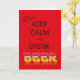 A funny card urging you to keep calm and drink beer on your birthday. A spoof on the internet meme.
