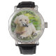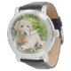 Personalised photo watch - perfect for a golf dad from the dog - but you are welcome to customise the text as you wish. Upload your favourite photo and it will be displayed with a semi-opaque border overlay, as a base for the typography. The wording currently reads "Dad, I love you to the ruff and back" which you can easily edit to suit.